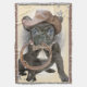 Chiot noir adorable comportant couvrant de bouledogue français de style occidental utilisant le casquette de cowboy patiné et tenant le lasso.