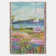 Deux voiliers et Cottage I de Karen Fields. Scène ludique et lumineuse avec fleurs, arbres, cottage et voiliers sur l'eau.