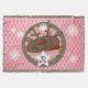 Belle couverture jetée de Noël avec un mignon renne rouge nez sur un arrière - plan de diamants roses, une bande de brun solide, et un centre rose avec des pois blancs et des flocons de neige.