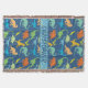 Motif de silhouette de dinosaure personnalisé. Tyrannosaurus Rex, titanosaurs, Triceratop, rapaces, Ankylosaurs, Dino-Oiseaux, Stegosaurus, Apatosaurus, Pteranodon et plus dans un motif coloré à l'arrière-plan bleu, et dinosaures dans vert, bleu, jaune et orange.