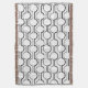 Cette couverture de lancer a un design moderne du milieu du siècle de cercles en noir coupé en deux et sur des lignes sur un champ de blanc.