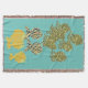 Mosaïque, dessin graphique, avec groupe, à motif rayé, et pochoir, exposé de poissons dans les couleurs vives de; orange, rouge, jaune, or, taupe, brun, noir et blanc, sur robin's-oeuf-bleu, arrière - plan.
