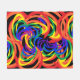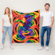 Cette magnifique couverture en toison présente un motif tridimensionnel abstrait de lunes arc-en-ciel aux couleurs rouge, orange, jaune, vert, bleu et violet sur un arrière - plan noir.