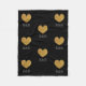 Couverture en toison motif à parties scintillant d'or monogramme personnalisé. Symbole d'amour noir et or 3 lettre monogramme molleton molleton. Couleur arrière - plan personnalisable. Motif glamour avec des lettres de typographie stylisées pour vos initiales de nom. Décor classique monogrammed maison pour chambre élégante, dortoir, lit, canapé ou canapé. Couverture paraphée. Convient aux hommes, femmes et enfants. Faites le vôtre pour vos amis et votre famille. Idée cadeau mariage classique pour marié et marié marié marié marié(e) marié(e) marié(e). Coeur doré faux avec de fausses parties scintillant et des lueurs brillantes.