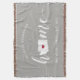 Montrez votre fierté pour votre État de résidence avec cette couverture grise rustique et mignonne avec le mot "home" en lettrage calligraphique blanc, où la silhouette de l'État de Washington remplace la lettre "O". Une illustration de cœur rouge à l'intérieur de la carte de l'État complète le design ; vous pouvez changer la position du cœur pour votre ville de résidence en ouvrant l'outil de conception et en faisant glisser la forme de cœur vers votre endroit préféré. Personnalisez avec votre ville de résidence, le nom de votre famille et l'année de fondation pour créer un cadeau de pendaison de crémaillère parfait et mémorable ou un ajout à votre nouvelle maison.