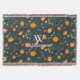 Jolie ferme de campagne style agrumes orange fruits botaniques motif et gris foncé / arrière - plan de la marine jetez la couverture avec votre lettre monogramme personnalisée et épais nom de famille de script blanc.