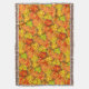 Motif en bloc sans couture de feuilles de automne stylisées en brun, rouge, orange, jaune et vert.