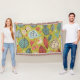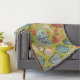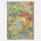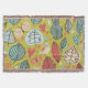 Des feuilles de couleur Whimsical en corail, bleu et crème sur un arrière - plan très vert avec beaucoup de gouttes de pluie, de coeurs, de papillons et un oiseau !