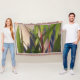 Le design rétro du tissu par ZoeSPEAK sur cette couverture Throw a été créé à partir d'une photo originale de longs feuilles verts minces à la fin de l'après-midi soleil, jetant des ombres bleues sur le mur en stuc derrière. Les plante sont des pétunias mexicains, aux tiges rougeâtres. L'atmosphère est somptueuse après-midi d'été d'autrefois.
