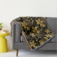 Couverture feuilles tropicaux & fleurs motif en or sur noir