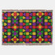 Cette couverture de lancer a un design Black History de fleurs et des rangées faites de triangles et de rectangles.