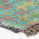 Des motifs bleus et jaunes vibrants se tissent dans un design symétrique et kaléidoscopique. Les détails complexes créent un effet fascinant qui rappelle une tapisserie ou une mosaïque.