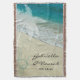Personnalisez le joli Mariage Tropical Beach avec les noms de la date de la mariée et du marié et la cérémonie de mariage pour créer un d'un fiançailles gentil, douche nuptiale ou un cadeau mariage gardien. Cette belle couverture de mariage à thème personnalisée tropiques dispose d'une photo nature améliorée numériquement d'une plage de sable, un océan bleu turquoise aqua avec un palmier blanc et un design tourbillon turquoise ornant le coin. Parfait pour le couple qui a planifié un thème de mariage de destination île.