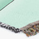 Un chat tabby orange qui regarde sur des couvertures couleur menthe pour regarder leur être humain dans l'espoir de les réveiller brillamment et tôt.