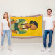 Portrait stylisé d'une femme au teint foncé, orné de bijoux circulaires audacieux et d'une robe verte vibrante. L'arrière - plan jaune minimaliste renforce son expression sereine et confiante, mêlant art moderne et élégance afrocentrique.
