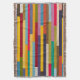 Cette couverture de lancer a une conception géométrique de bandes colorées qui tournent verticalement.