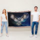 Faune extraordinaire. Le hibou de grand gris ou le hibou de grand gris est un hibou très grand, documenté comme plus grandes espèces du monde de hibou par longueur. Hibou en vol, ciel foncé avec des étoiles et lune bleue.