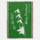 Ajoutez une touche saisonnière amusante à votre maison avec cette couverture à jetons verte et blanche personnalisée. Blanket est doté d'arrière - plan vert avec des salutations de Noël Joyeuses blanches et texte Ho Ho Ho, votre nom de famille, et le Père Noël volant dans son traîneau avec des rennes. Cette couverture jetable fait aussi un grand anniversaire personnalisé, douche nuptiale, mariage, Noël, ou tout autre cadeau de vacances.