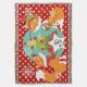Customisé Red Fox vacances de Noël jetez une couverture, coloré, amusant, mignon, et gai! On y trouve deux renards rouges avec casquette et foulards d'hiver, un sapin de Noël avec des boules rouges, et des flocons de neige blancs sur un arrière - plan bleu aqua avec une bordure rouge avec des pois blancs. Il y a aussi une bannière en forme d'étoile que vous pouvez personnaliser avec votre monogramme initial!