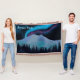 Les lumières du nord violet et bleu brillent au-dessus des montagnes enneigées par une nuit froide en Alaska. "Joyeux Noё l" apparaît en bleu et blanc éclatant.
