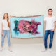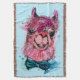 Caractéristiques de conception ce qu'un portrait mignon d'aquarelle d'un lama dans l'aquarelle éclabousse du rose et du bleu.