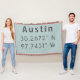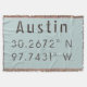 Couverture jetée de style industriel avec les coordonnées de latitude et de longitude de la carte d'Austin Texas dans une police urbaine moderne. - peut être personnalisé à n'importe quelle combinaison de couleurs