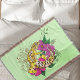 Un léopard gecko est assis parmi les fleurs et le henné dans un arrière - plan de tout vert