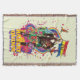 Illustration lithographique de style rétro de Harley Quinn tenant un drapeau avec des explosions de fleurs, des arcs-en-ciel ondulés et des oiseaux colorés !