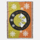 Angels Oh Come Let Us Adore Him Christmas jeter couverture dispose d'un beau design avec un arrière - plan de pois orange et moutarde pointillée, un anneau de solide noir, et un anneau de moutarde avec pois blanc et le texte orange qui dit Oh Come Let Us Adore Him! Trois petits anges et des flocons de neige blancs ajoutent à ce joli coup de Noël qui sera chéri pour les années à venir!