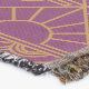 Cette couverture de lancer a un design art déco de demi-cercles et de lignes qui ressemblent à un lever de soleil en or sur un champ d'aubergine. Message-moi.
