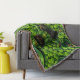 Snuggle up with a bit of Irish luck with this festive Saint Patrick's Day throw blanket this cozy design features a charming black cat dressed as a dancing leprechaun in a classic green buckled suit and hat be all over print background is filled with a lush pattern of lucky for leaf clovers and vibrant leprechaun top hats making it the perfect home accessory for March 17