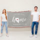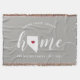 Montrez votre fierté pour votre état natal avec cette jolie couverture grise rustique en jetant avec "chez soi" en lettrage calligraphié blanc avec une carte en silhouette de l'état du Nevada à la place de la lettre "O". Une illustration de cœur rouge à l'intérieur de la carte de l'état complète le design ; vous pouvez changer la position du cœur pour votre ville natale en ouvrant l'outil de conception et en faisant glisser la forme de cœur vers votre endroit préféré. Personnalisez avec votre ville natale, le nom de votre famille et l'année de fondation pour créer un cadeau de pendaison de crémaillère parfait et mémorable ou un ajout à votre nouvelle maison.