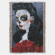 Portrait d'une femme portant un jour de crâne de sucre de l'homme mort avec des roses rouges dans un fond de gris bleu