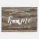 Montrez votre fierté pour votre état d'origine avec cette couverture jetée en planches de bois rustique factice mignonne avec le mot "home" en lettrage calligraphié blanc, où la silhouette de l'état du Massachusetts remplace la lettre "O". Une illustration d'un cœur rose à l'intérieur de la carte de l'état complète le design ; vous pouvez changer la position du cœur pour votre ville natale en ouvrant l'outil de conception et en faisant glisser la forme du cœur vers votre endroit préféré. Personnalisez avec votre ville natale, le nom de votre famille et l'année de fondation pour créer un cadeau de pendaison de crémaillère parfait et mémorable ou un ajout à votre nouvelle maison.