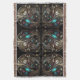 Ornement de métal décoratif de fleurs et de feuilles, dans le style d'illustration onirique, bronze foncé, et azur.