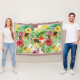 Couverture Mix-fruit tropical, fleurs et feuilles sur blanc