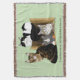Quatre Chats regroupés autour d'une boîte en carton sur fond de vert