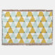 Motif géométrique tendance avec triangles bleu menthe, jaune doré et blanc.