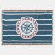 Design nautique avec décoration de boussole en forme ronde sur bleu et blanc rayé arrière - plan