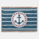 Design nautique avec décoration d'ancre en forme ronde sur bleu et blanc rayé arrière - plan