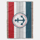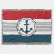Design nautique avec décoration d'ancre en forme ronde sur bleu, rouge, gris et blanc rayé arrière - plan