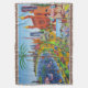 The painting features New York’s great landmarks: the Statue of Liberty, the Chrysler Building, the Empire State Building, perhaps the Guggenheim Museum, major skyscrapers, and other well-known structures.