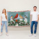 Une collection d'oiseaux chanteurs sur une clôture recouverte de neige décorée de guirlandes de Noël. Les espèces d'oiseaux comprennent le bleuet de l'est, les cardinaux rouges du nord et les poulets à capuchon noir. La clôture est ornée d'une guirlande de Noël constituée de branches de pin, de cônes et de baies sèches, agrémentée de cloches à sonnettes d'or et d'un ruban rouge vif.