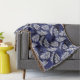 Feuilles de palmiers blancs sur un arrière - plan bleu indigo, recouverts de frondes de palmiers plus bleues.