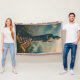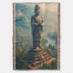 Une majestueuse statue en pierre se dresse gardienne silencieuse sur une brumeuse vallée indonésienne, son visage serein sculpté avec une grâce intemporelle. L'ancienne figure repose sur une base de temple patiné et grandiose, donnant sur un village paisible niché au milieu d'une végétation luxuriante et de rivières tortueuses. Entourée d'une brume douce, la scène capture un profond