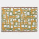 Cette couverture de lancer a un design moderne du milieu du siècle de rectangles ouverts en or sur des rectangles ouverts en vert.