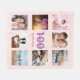 Un cadeau pour le 100e anniversaire d'une femme, célébrant sa vie avec un collage de 8 de vos photos de ses amis, de sa famille, de ses intérêts ou de ses animaux de compagnie. Personnalisez et ajoutez son nom, 100 ans et une date. Date de naissance ou date de la fête d'anniversaire. Lettres de couleur rose et violet. Doré rose, jeune et tendance, couleur arrière - plan rose vif.