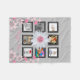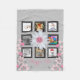 Créez celui d'une couverture aimable de crèche de bébé de souvenir de photo pour le bébé. L'arrière - plan gris-clair avec 8 photos carrées encadrées noires forment une frontière autour d'une initiale décorée d'un monogramme au centre sur des pétales de fleur de marguerite avec un centre rose. Le nom de la fille personnalisée est en manuscrit rose élégant sur les côtés inférieurs inférieurs ont le rose et les frontières florales grises avec des tulipes de printemps et plus de fleurs de marguerite. Ajoutez 8 photos personnelles de votre nouveau bébé ou d'un collage de photo de famille. Customisez plus loin en changeant la couleur, la taille, le style, et/ou la couleur d'arrière - plan de toutes les polices. Perfectionnez l'idée girly de cadeau pour des femelles de tous les âges ou d'un joli, personnalisé cadeau de douche de bébé.