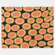 Un design abstrait peint à la main, composé de formes ovales avec centre orange et bordé d'ambre sur un arrière - plan noir. Le design est peint dans de la peinture à l'huile numérique avec un léger effet d'impasto donnant un look peint à l'huile brossée.