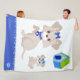 Ajoutez une touche mignonne à votre chambre à coucher ou à votre pépinière avec cette adorable couverture en toison de chiot. Blanket dispose d'un chien maman avec un chiot bébé. Les deux chiens portent des arcs bleus et la mère chien porte un collier. Il y a aussi une maison de chien dans l'arrière - plan, un motif de point de croix, et un empreinte de patte de chien. Customisez la couverture avec le prénom de votre petite fille ou garçon.